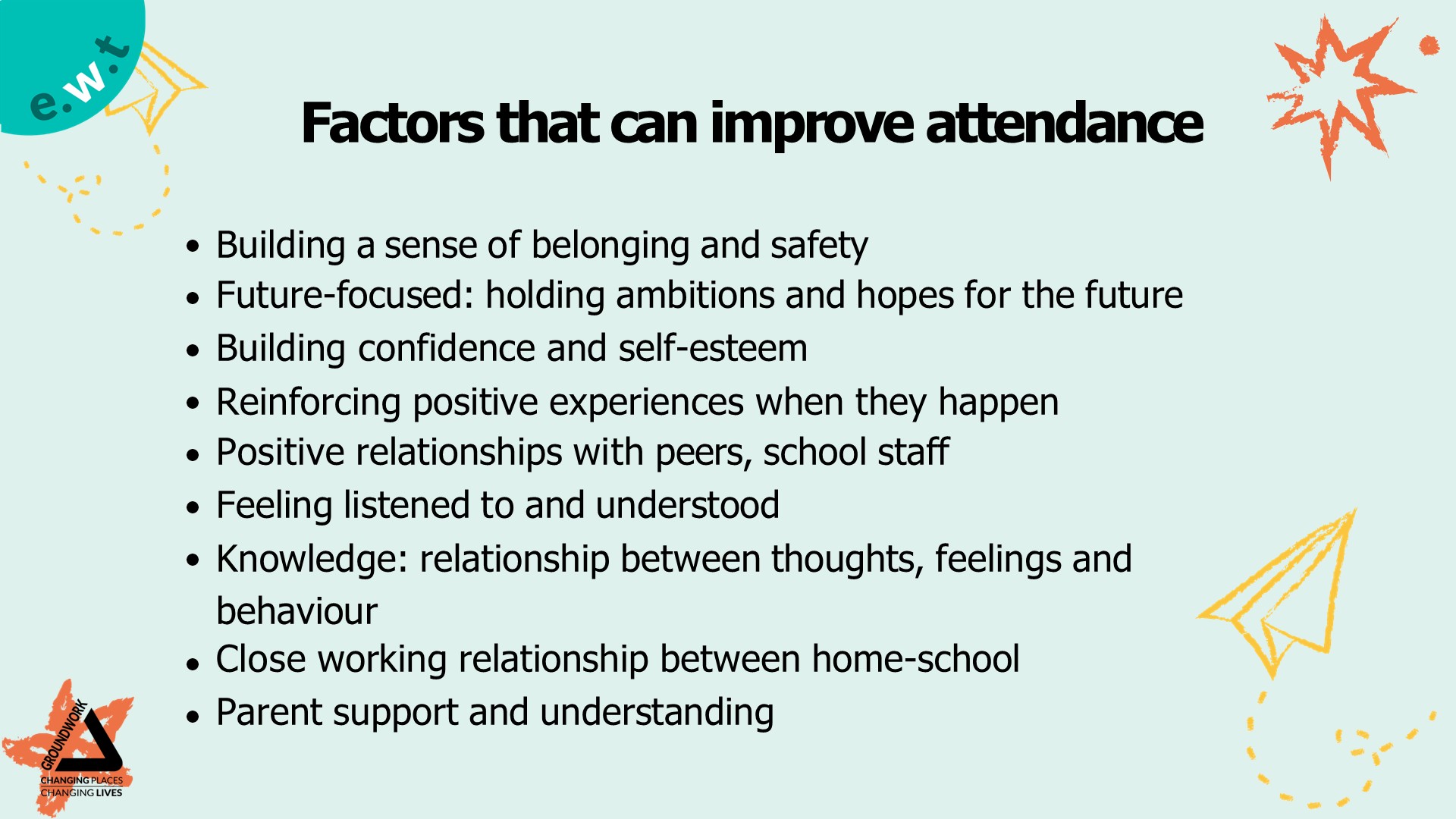 • 1:1 evidence-based intervention with the Learning Development and Pastoral teams eg. Precision Teaching, Emotional Literacy