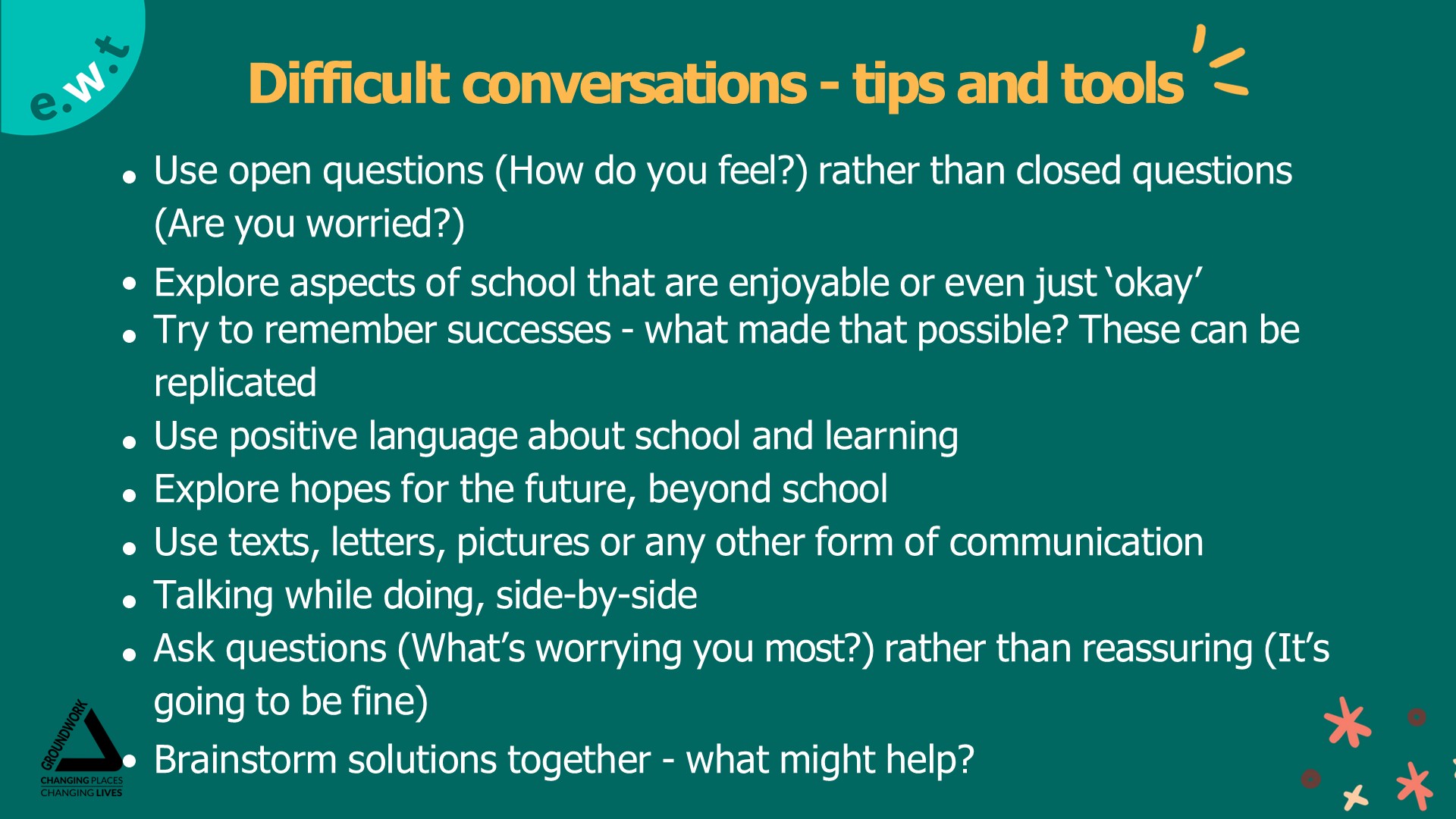 • Counselling (on-site and CAMHS)